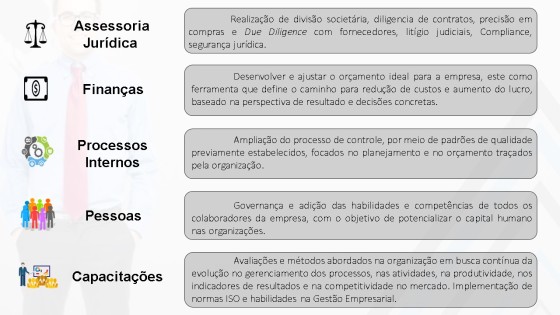Serviço de contabilidadeCorretagem de segurosLocação de espaços para eventosServiço de declaração de impostosServiço de guarda-costasDestruição de documentosServiço de segurançaAssistência administrativaTelemarketingMarketing digitalPublicidadeMarketing em mídias sociaisDistribuição de panfletosMala diretaRh e serviços de pagamentosRecuperação de créditoMarketingTelemarketing e televendasServiços bancáriosRestituição de impostos