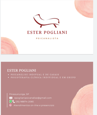 Tem uma pergunta para Ester Pogliani Psicanálise e Psicoterapia?Explique seus objetivos e requisitos ou peça as informações adicionais que você precisa para tomar sua decisão.