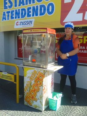 a locação de máquina de pipocas e de algodão doce R$ 250,00 reais cada [9:30 hrs às 16:00 hrs,