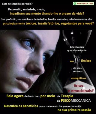 Tem uma pergunta para Terapia da Psicomeccanica?Explique seus objetivos e requisitos ou peça as informações adicionais que você precisa para tomar sua decisão.